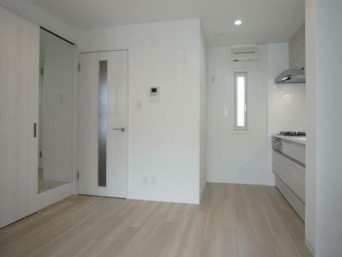 【2023年8月に内装リノベーション実施済み。】1.間取りを2DKから1LDKに変更。2.和室を洋室に変更してオール洋室に。3.浴室新規交換。追焚機能や浴室乾燥機能付き。4.3口ガスコンロ付きシステムキッチン新設。5.ウォシュレット一体型トイレを新設。6その他。LDKのクロスの一部にはアクセントクロスを採用し、高級感を高めています。バルコニー面は駐車場の為、開放感があり陽当たりも良好です。エアコンも2基設置済み。オートロックはありませんが、インターホンは来訪者を確認出来るTVモニター付きのものが設置されています。内見も可能です。お気軽にお問い合わせください。