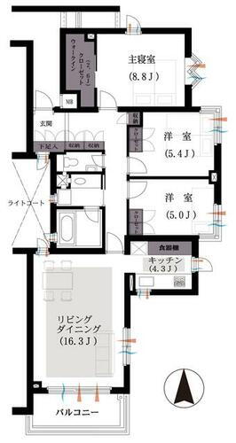 3LDK(洋 8.8・5.4・5 LDK 20.6) |