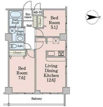 2LDK(洋室7.6畳/洋室5.1畳/LDK12.6畳) |