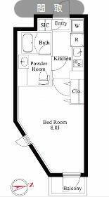 | 間取り | 1K(洋8) | 築年月(築年数) | 2020年9月(築5年4ヶ月) |