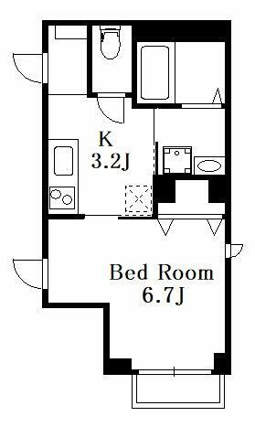 | 間取り | 1K(洋6.7、K3.2) | 築年月(築年数) | 2019年9月(築6年4ヶ月) |