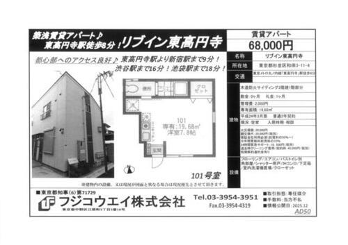 | お問い合わせ先 | 商号:フジコウエイ(株) 免許番号:東京都知事免許(7)第71729号 所在地:中野区江原町3丁目5-10 TEL:03-3954-3951 取引態様:仲介 管理コード: 所属協会など:(公社)東京都宅地建物取引業協会会員、(公社)首都圏不動産公正取引協議会加盟 |