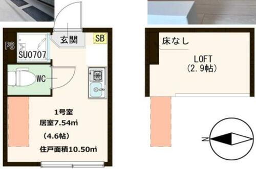 ワンルーム(洋室4.6ロフト2.9) |