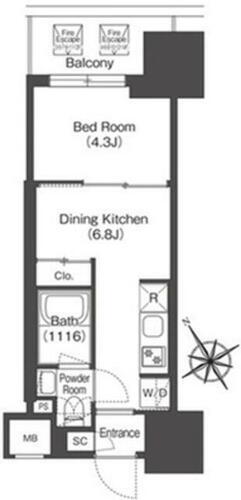 | 間取り | 1DK(DK6.8洋室4.3) | 築年月(築年数) | 2024年9月(築1年3ヶ月) |