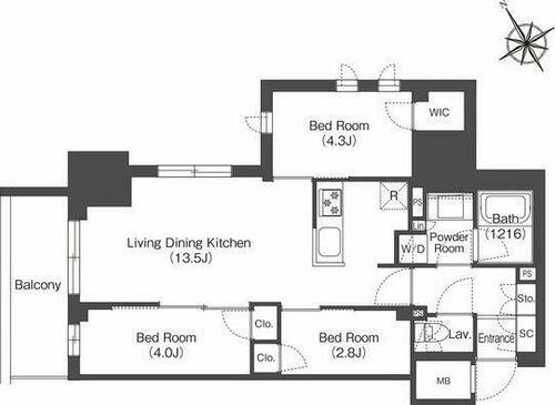 3LDK(LDK13.5 洋室4.3 洋室4 洋室2.8) |