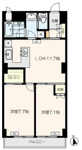 | 間取り | 2LDK(洋室7.7 洋室7.1 LDK11.7) | 築年月(築年数) | 1971年5月(築54年8ヶ月) |