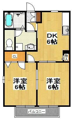 2DK(洋室6畳/洋室6畳/DK6畳) |