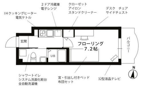 エアコン・給湯・オートロック・バルコニー・バス・トイレ別・トイレ・洗濯機置場・室内洗濯機置き場・シャワー・エレベーター・冷蔵庫・洗面台・フローリング・温水洗浄便座・システムキッチン・モニタ付インターホン・駐輪場・ベッド・IHクッキングヒータ・洗濯乾燥機・モニタ付オートロック・防犯カメラ・家具付き・洗面所独立・光ファイバー(ブロードバンド)・インターネット対応・家電付き |