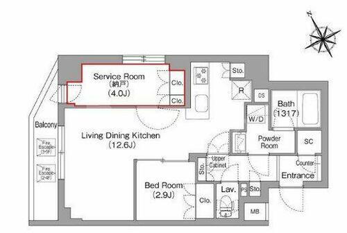 1SLDK(LDK12.6帖 洋室2.9帖 S4.0帖) |