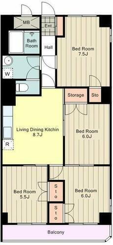 | 間取り | 4DK(DK8.7帖 洋室6.0帖 洋室7.5帖 洋室5.7帖 洋…) | 築年月(築年数) | 1987年8月(築38年3ヶ月) |