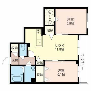 2LDK(LDK11.8帖 洋室6.9帖 洋室6.1帖) |