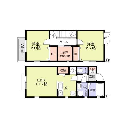 2SLDK(LDK11.7/洋6.7/洋6/納戸(S)2) |