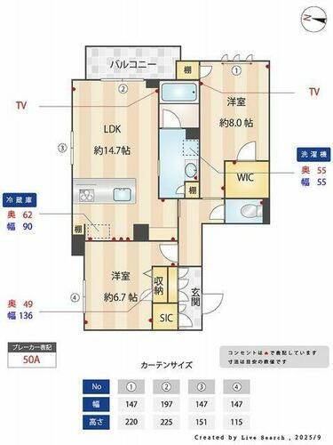 | 間取り | 2LDK(LDK14.7帖 洋室8.0帖 洋室6.7帖) | 築年月(築年数) | 2025年9月 新築 |