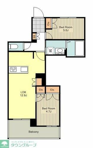 2LDK(LDK12.9帖 洋室5.0帖 洋室4.7帖) |