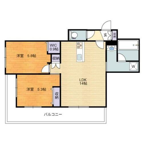 2LDK(LDK14 洋室5.8 洋室5.3 その他0.9) |