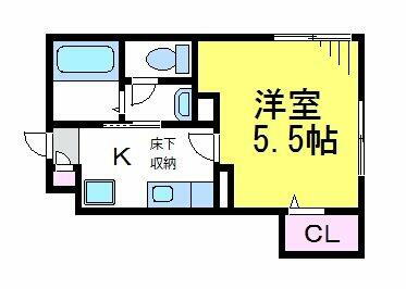 | 間取り | 1K(洋5.5) | 築年月(築年数) | 2017年3月(築8年10ヶ月) |