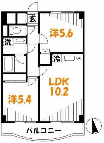| 間取り | 2LDK(LDK10.2帖 洋室5.4帖 洋室5.6帖) | 築年月(築年数) | 2000年3月(築25年10ヶ月) |