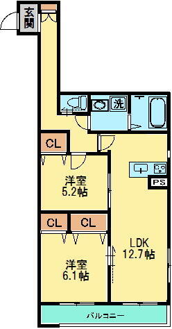 2LDK(洋 5.2・6.1 LDK 12.7) |