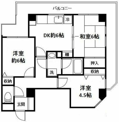 | 間取り | 3DK(DK6、和6、洋6、4.5) | 築年月(築年数) | 1989年4月(築36年9ヶ月) |