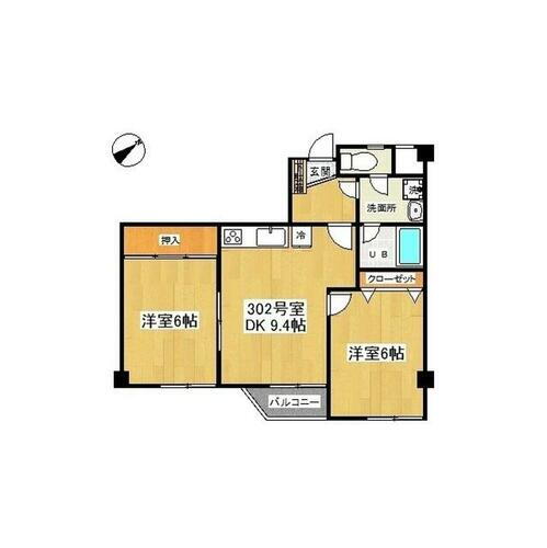 2DK(洋室6畳/洋室6畳/DK9.4畳) |