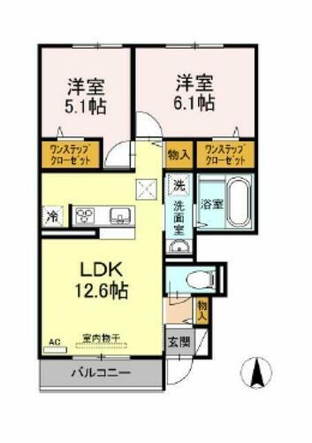 2LDK(LDK12.6帖 洋室6.1帖 洋室5.1帖) |