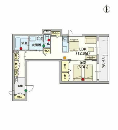 1LDK(LDK12.6、洋6) |