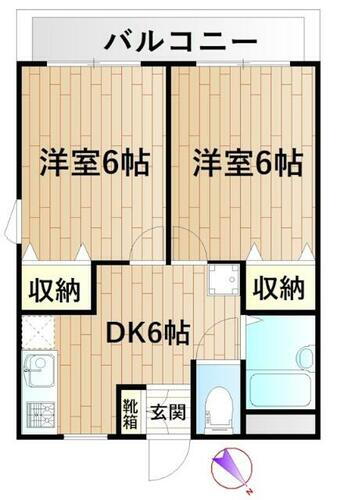 2DK(洋室6畳/洋室6畳/DK6畳) |