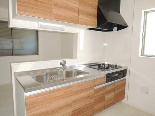 新築!ピアノOK(グランドピアノ不可)の3LDK賃貸戸建です。家計にやさしい都市ガス、13.2帖の広々としたリビングと会話も弾む対面式のシステムキッチンが魅力です。皆様のご来店心よりお待ちしております。