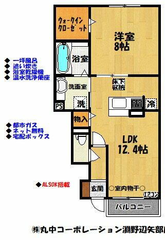 | 間取り | 1LDK(LDK12.4、洋8) | 築年月(築年数) | 2018年5月(築7年6ヶ月) |