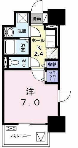 | 間取り | 1K(洋室7畳/K2.4畳) | 築年月(築年数) | 2019年3月(築6年8ヶ月) |