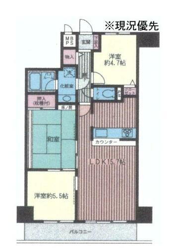 | 間取り | 3LDK(和 6 洋 4.7・5.5 LDK 15.7) | 築年月(築年数) | 1992年12月(築33年1ヶ月) |