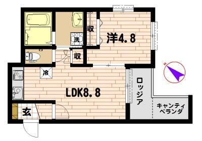 | 間取り | 1LDK(洋室4.8・LDK8.8) | 築年月(築年数) | 2018年6月(築7年7ヶ月) |