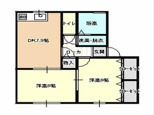 | 間取り | 2DK(洋 6・6 DK 7.5) | 築年月(築年数) | 1997年4月(築28年9ヶ月) |