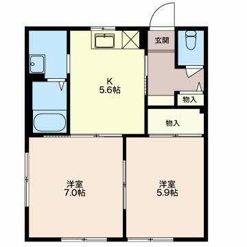 | 間取り | 2K(K5.6帖 洋室7.0帖 和室6.0帖) | 築年月(築年数) | 1998年6月(築27年7ヶ月) |