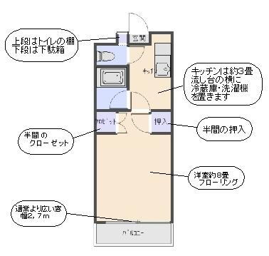 | 間取り | 1K(洋 8 K 3) | 築年月(築年数) | 2001年7月(築24年6ヶ月) |