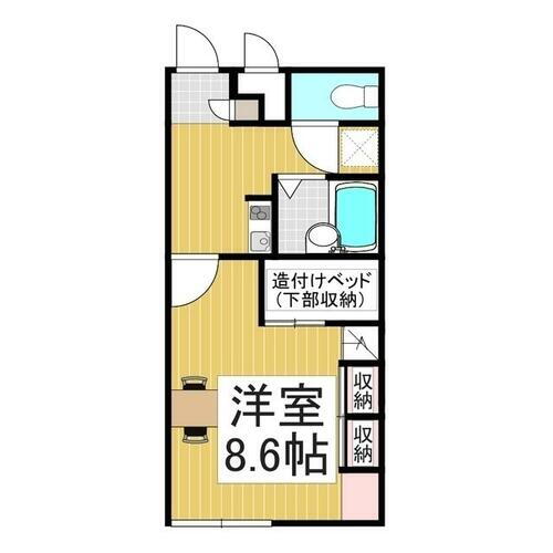 | 間取り | 1K(洋8.6 K0) | 築年月(築年数) | 2001年10月(築24年3ヶ月) |