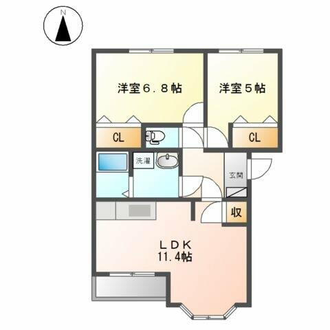 | 間取り | 2LDK(LDK11.4、洋6.8、洋5) | 築年月(築年数) | 2012年5月(築13年8ヶ月) |