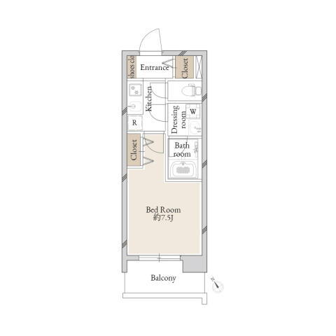 | 間取り | 1K(洋7.5) | 築年月(築年数) | 2022年6月(築3年7ヶ月) |