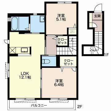 | 間取り | 2LDK(LDK12.1帖 洋室6.4帖 洋室5.1帖) | 築年月(築年数) | 2010年6月(築15年7ヶ月) |