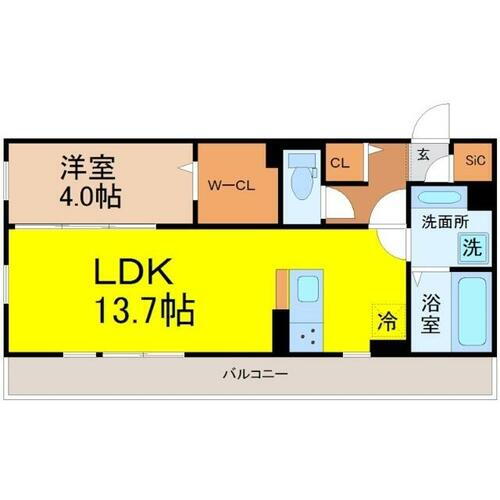 | 間取り | 1LDK(洋室4畳/LDK13.7畳) | 築年月(築年数) | 2021年2月(築4年11ヶ月) |
