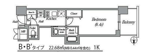 1K(洋室6.4畳) |