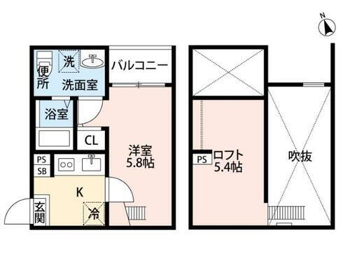 | 間取り | 1K(洋室5.8畳/ロフト5.4畳) | 築年月(築年数) | 2016年3月(築9年10ヶ月) |