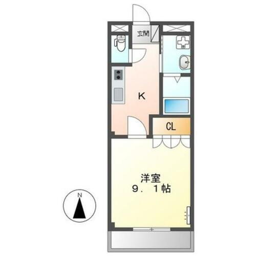 | 間取り | 1K(K2.5・洋室9.1) | 築年月(築年数) | 2008年12月(築17年1ヶ月) |