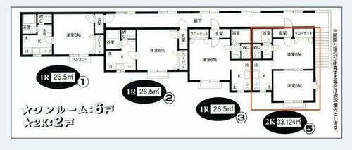 | 間取り | 2K(洋 6・6) | 築年月(築年数) | 1999年7月(築26年6ヶ月) |
