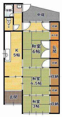 | 間取り | 3K(K5、和6、和4.5、和3) | 築年月(築年数) | 1976年1月(築49年12ヶ月) |