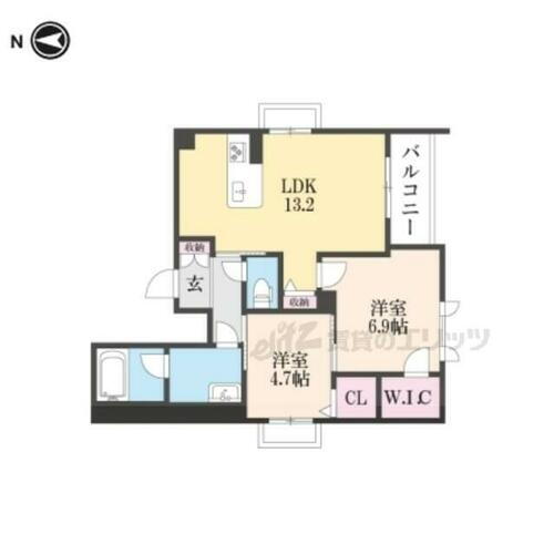 | 間取り | 2LDK(LDK13.2×洋6.9×洋4.7) | 築年月(築年数) | 2023年9月(築2年4ヶ月) |