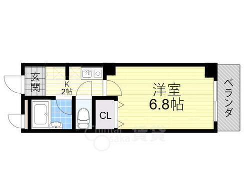 | 間取り | 1K(K 2/洋室 6.8) | 築年月(築年数) | 2004年1月(築21年12ヶ月) |