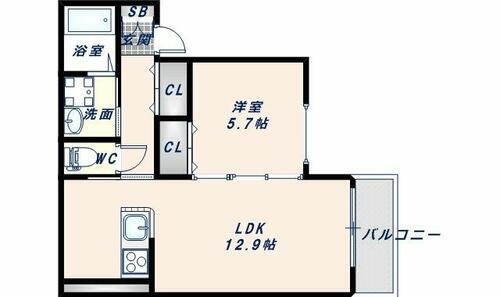 1LDK(洋5.7、LDK12.9) |