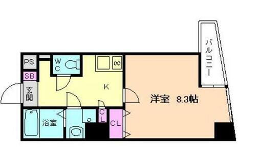 | 間取り | 1K(K・洋室8.3) | 築年月(築年数) | 2008年3月(築17年10ヶ月) |