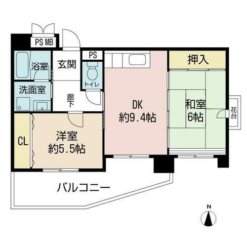 | 間取り | 2DK(DK9.4/洋5.5/和6) | 築年月(築年数) | 1995年9月(築30年4ヶ月) |